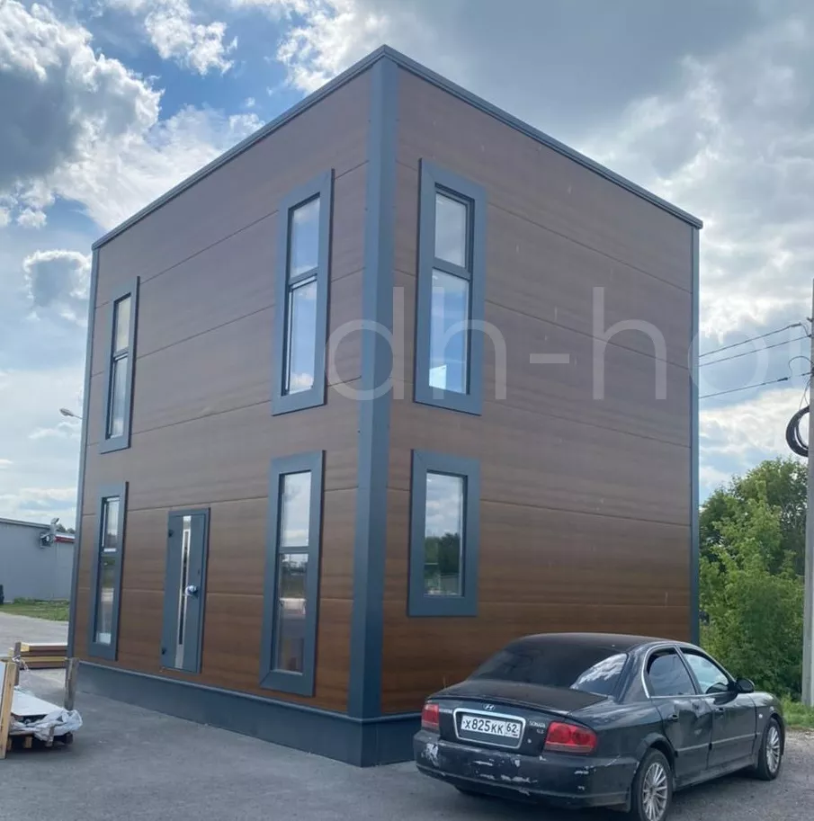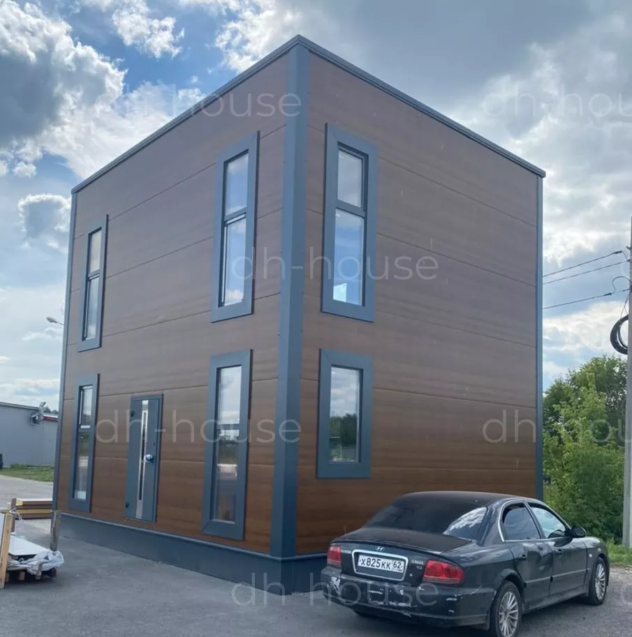 Быстровозводимый каркасный дом серии DoorHan Лайт 88 рассчитан для постоянного проживания семьи из 3–4 человек. Для отделки фасада двухэтажного модульного здания использованы современные стеновые сэндвич-панели, обеспечивающие теплый и комфортный микроклимат в самые сильные морозы. Высокие окна «в пол» визуально увеличивают высоту помещений и обеспечивают лучшее поступление естественного освещения. Планировка модульного загородного дома предусматривает функциональность и рациональное зонирование полезной площади. При необходимости в проект могут вноситься изменения с учетом требований заказчика.